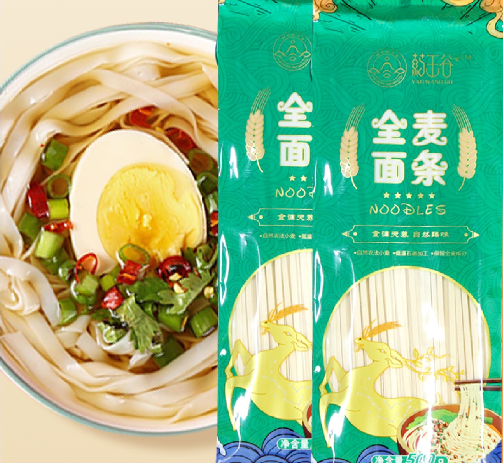 神农架全麦面条 全麦面粉是用整粒小麦直接磨成粉,保留了小麦